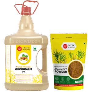 - IndicWisdom Wood pressed Groundnut Oil (Cold Pressed) is EXTRACTED ON WOODEN CHURNER.